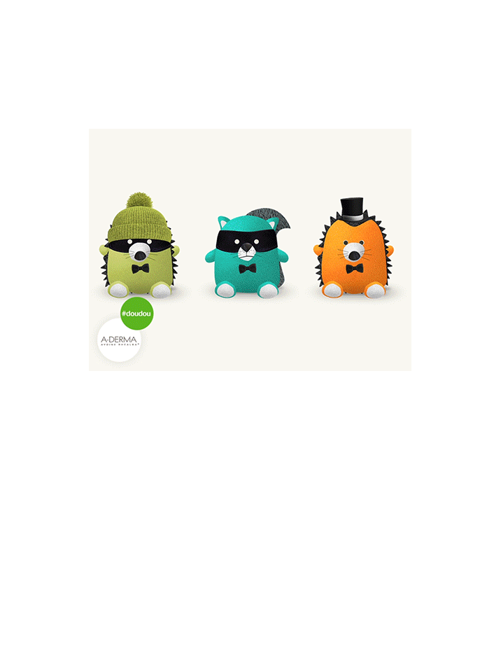 Les clients d'A-Derma furent invités à créer à l'aide d'un générateur en ligne leur doudou personnalisé. Après une première phase de partage et de votes, les dix meilleurs furent présentés à jury qui sélectionna ainsi la nouvelle mascotte d'A-Derma.